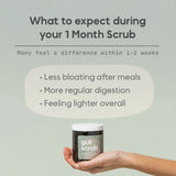 I have been really enjoying my experience thus far with Gut Scrub knowing I am holistically healing my gut health. My results have been slower, haven't seen anything out of the ordinary in the toilet yet, but I'm being patient and trusting the process! I have noticed an improvement in my skin, but I’m definitely going to ramp up my dose next full moon cycle and hopefully see some more results!